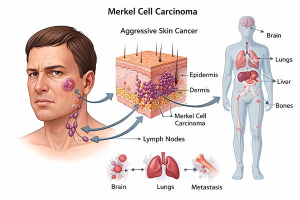 메르켈세포암은 전이가 빠르게 이루어질 수 있어, 피로감과 체중 감소를 유발할 수 있습니다. 암이 전이되면 몸의 에너지를 소모하게 되어 체중이 급격히 감소할 수 있습니다. 또한, 암세포가 전신에 영향을 미치면서 극심한 피로를 느끼게 할 수 있습니다. 이러한 증상은 종양이 커지거나 전이된 상태에서 나타날 수 있습니다.